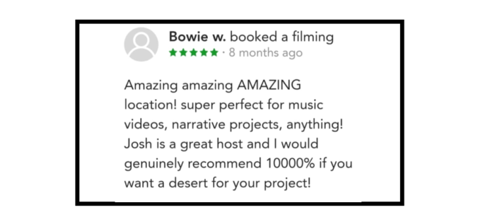 Welcome to 5 Acres Ranch, just a short 50 minute drive from the city of Los Angeles. We offer a 360 view of the breath taking Mojave desert . Here you will find huge rock formations along with countless Joshua Trees. Our property can accommodate 1 up to 130 people making it the perfect location to scene your desert photo or film shoots.
